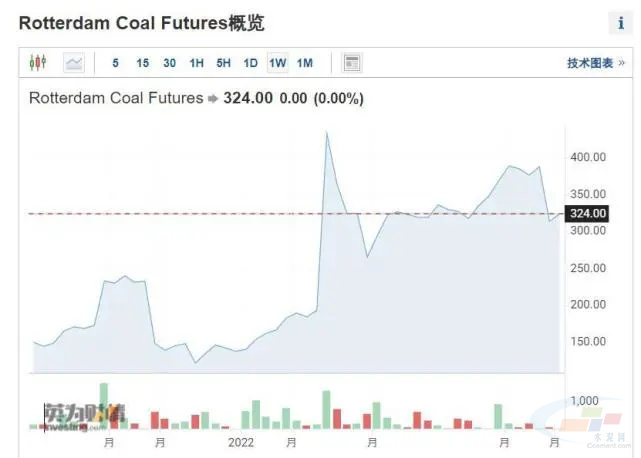 歐洲煤炭價(jià)格基準(zhǔn)之一、鹿特丹煤炭期貨價(jià)格走勢 圖片來源:英為財(cái)情