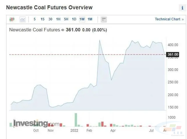由于印度與許多煤炭出口國都簽有長期供應(yīng)合同,因此歐盟將不得不和印度展開激烈的競爭。此前,由于市場供應(yīng)緊缺,澳大利亞紐卡斯?fàn)柛郜F(xiàn)貨煤炭價(jià)格在6月22日曾一度達(dá)到402.50美元/噸,創(chuàng)下紀(jì)錄,這也是其史上首次突破400美元/噸。