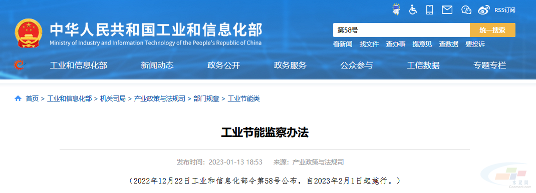 近日,工業(yè)和信息化部發(fā)布《工業(yè)節(jié)能監(jiān)察辦法》(工業(yè)和信息化部令第58號(hào),以下簡(jiǎn)稱《辦法》),并于2023年2月1日起施行。......