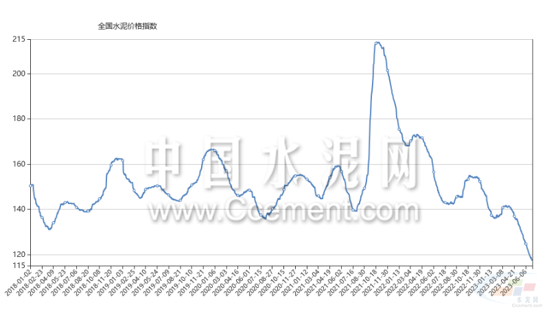 弱需求、高庫存、資金緊張是今年上半年水泥行業(yè)存在的普遍現(xiàn)象。據(jù)全國水泥價格指數(shù)(CEMPI)顯示,截至6月底,該指數(shù)報收117.61點,環(huán)比下跌1.28%,同比下跌19.09%。自今年4月開始,該指數(shù)持續(xù)下行,一路跌至近5年新低。