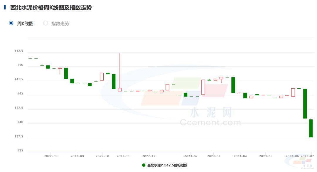 6月中下旬,各地高溫多雨,下游施工清淡,需求進一步走弱,水泥價?格延續(xù)跌勢。入梅后南方地區(qū)雨水天氣較多,企業(yè)出貨量下降;北方地區(qū)高溫天氣明顯,市場需求季節(jié)性下滑,行情走弱為主。