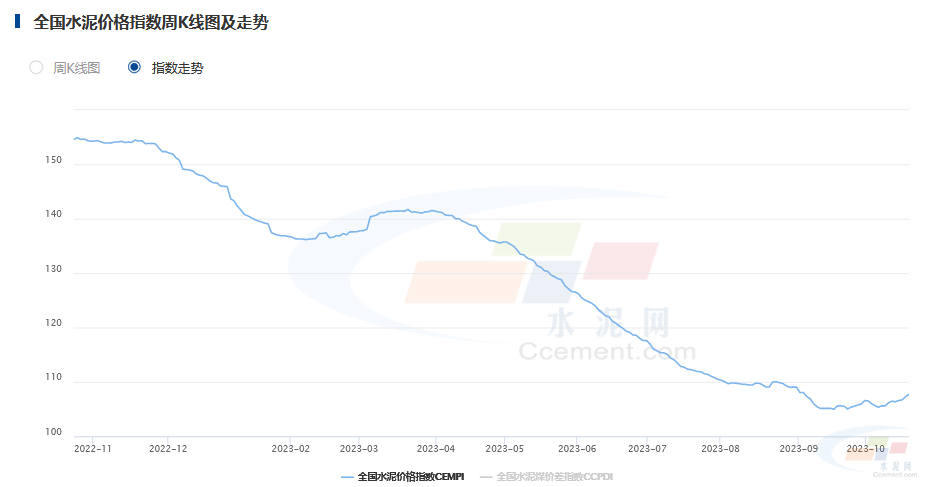 截止10月24日,全國(guó)水泥價(jià)格指數(shù)(CEMPI)為108.65點(diǎn),較月初的106.53點(diǎn)上漲2.12點(diǎn),漲幅僅為2%,同比下跌29.71%??偟膩砜矗?0月至今由于下游需求恢復(fù)有限,水泥價(jià)格小幅探漲。