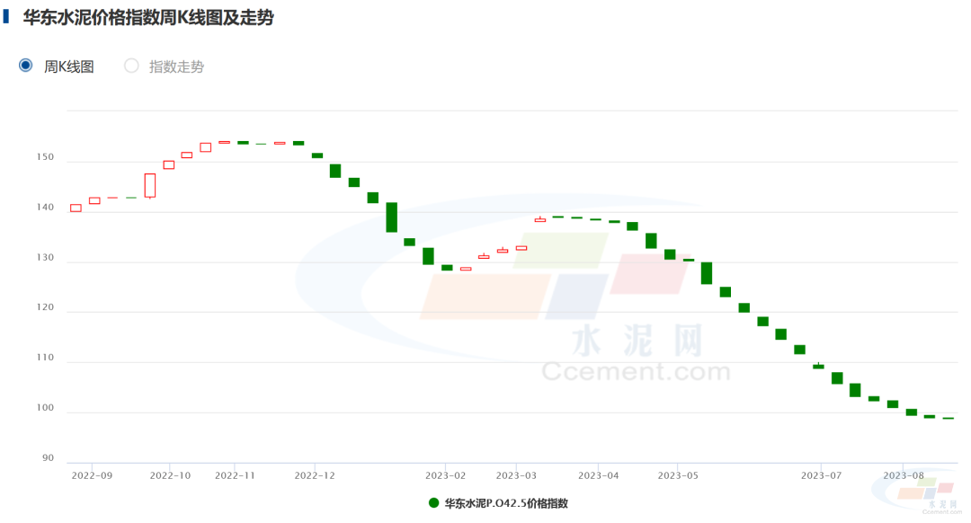 上周五,全國水泥價格指數(shù)(CEMPI)報收109.09點,環(huán)比下跌0.32%,同比下跌23.5%。