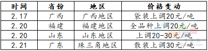 春節(jié)期間,多數(shù)地區(qū)放假停工,水泥企業(yè)進(jìn)行錯(cuò)峰或檢修停產(chǎn),供應(yīng)出現(xiàn)下滑,庫存保持相對(duì)低位運(yùn)行,節(jié)后庫存壓力下降,企業(yè)漲價(jià)意愿強(qiáng)烈,華東、華南部分水泥大省開始零星調(diào)漲水泥價(jià)格。