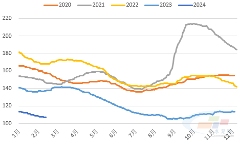 2022-2023年受房地產(chǎn)市場深度調(diào)整影響,市場競爭激烈,水泥價(jià)格震蕩下行,當(dāng)前全國水泥價(jià)格指數(shù)報(bào)收106.82點(diǎn),處于五年來相對(duì)低位水平,多數(shù)水泥企業(yè)虧損慘重,因此節(jié)后提漲水泥價(jià)格、向上修復(fù)利潤的意愿十分強(qiáng)烈。