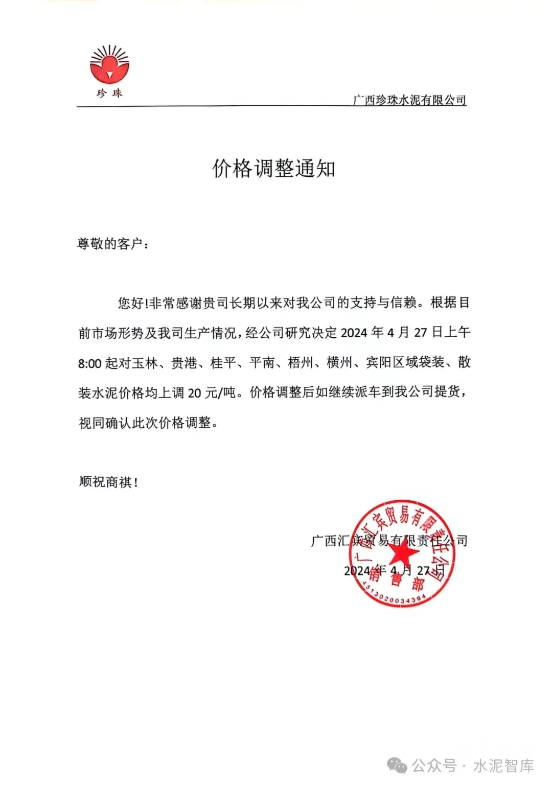 4月26日起,廣西各地級(jí)市水泥企業(yè)也陸續(xù)發(fā)布價(jià)格上漲通知,幅度20元/噸。競(jìng)爭(zhēng)較為激烈地區(qū)P.O42.5散裝水泥價(jià)格有望從190-200元/噸上調(diào)至210-220元/噸。