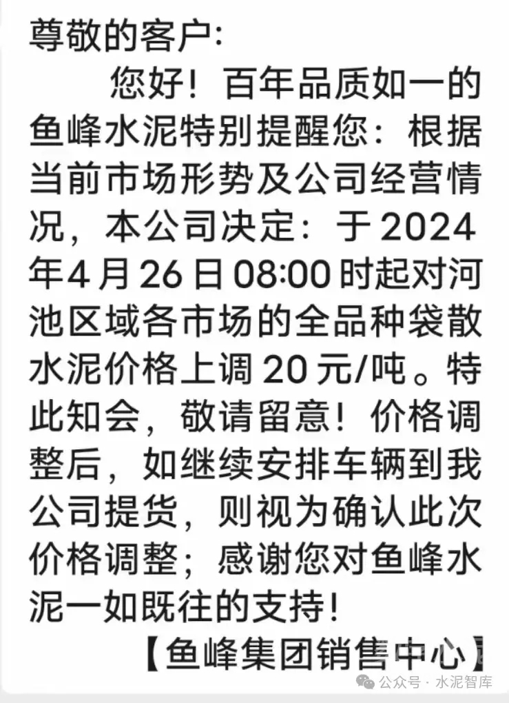 長(zhǎng)江沿線地區(qū)水泥價(jià)格于4月中旬小幅恢復(fù)性上調(diào)后,4月24日,東北地區(qū)因虧損嚴(yán)重,企業(yè)經(jīng)營(yíng)困難,發(fā)布大幅上漲消息,通知上調(diào)20-60元/噸。