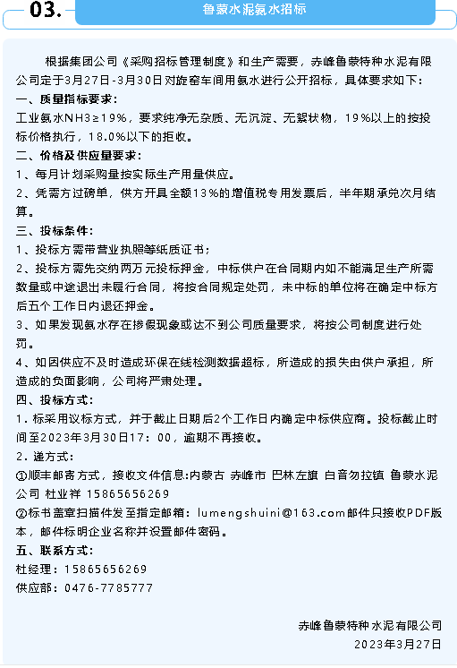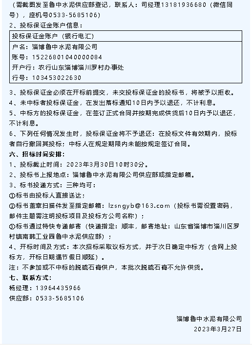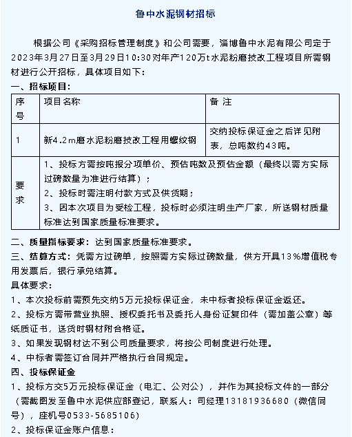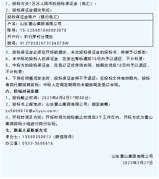【招標公告】重山集團、魯中水泥、魯蒙水泥