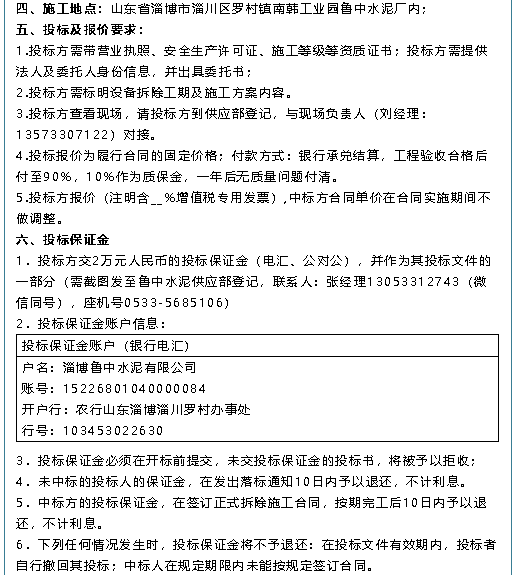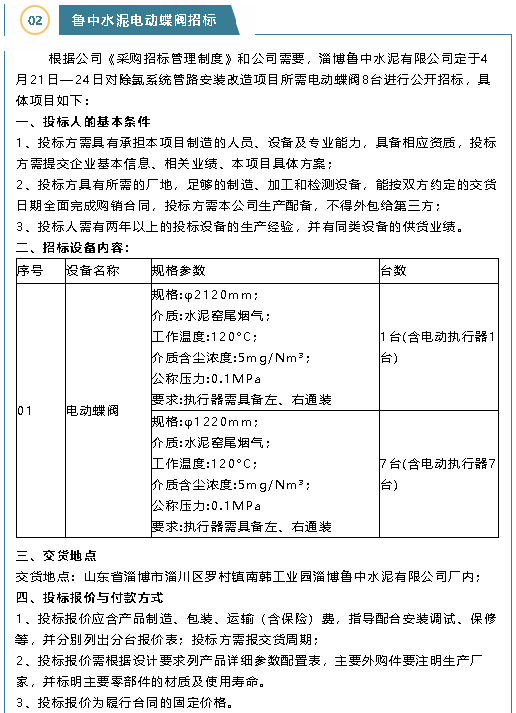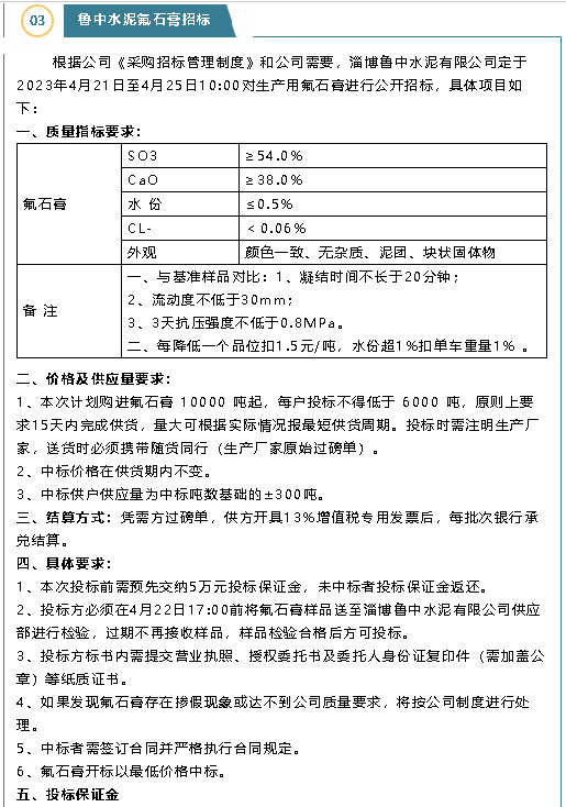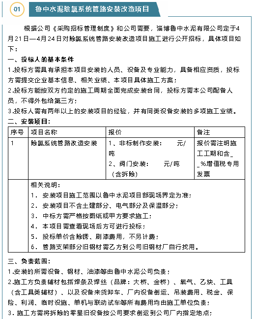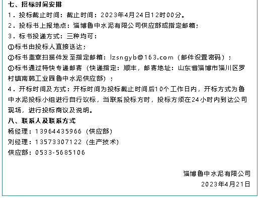 【招標(biāo)公告】魯中水泥、重山思沃瑞