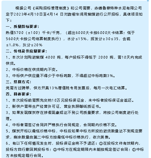 【招標(biāo)公告】魯蒙水泥