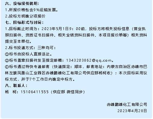 【招標公告】鵬峰化工