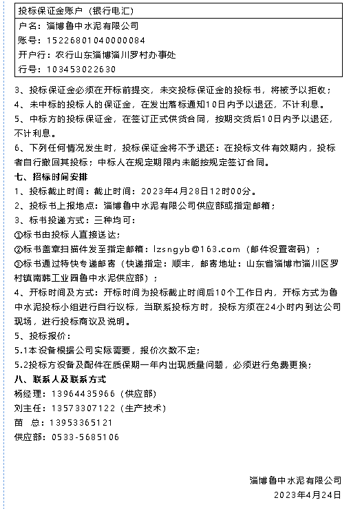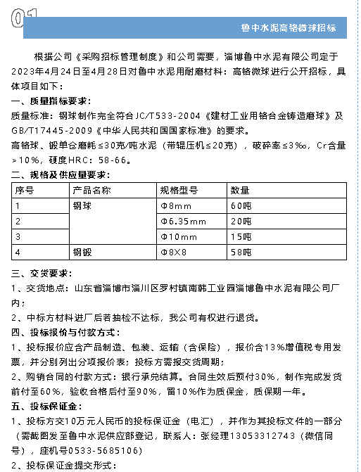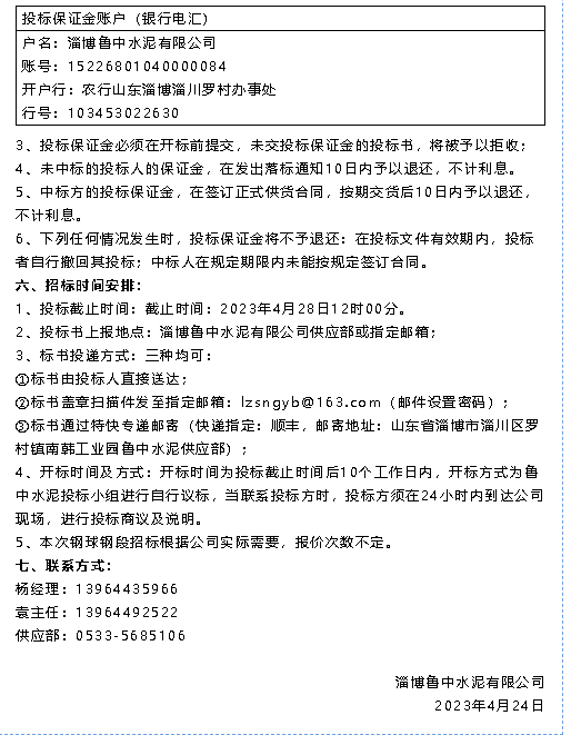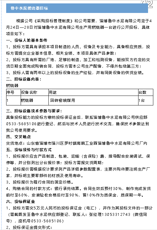【招標公告】魯中水泥