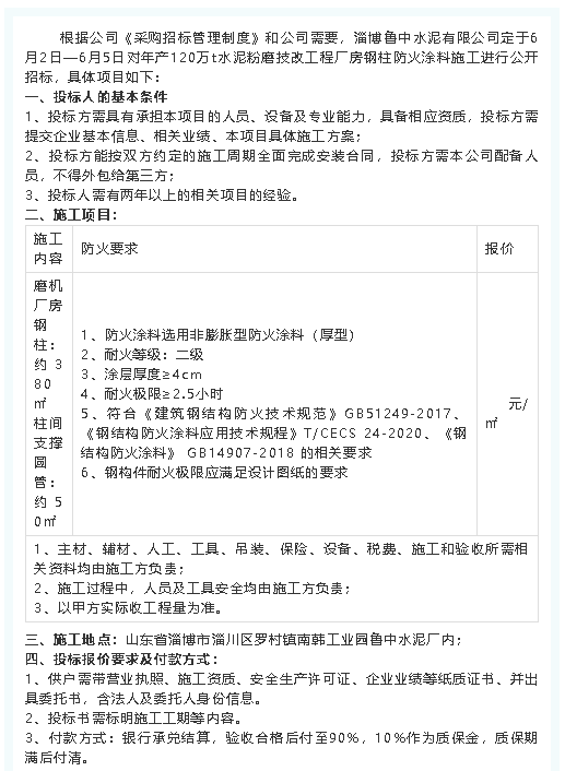 【招標(biāo)公告】魯中水泥