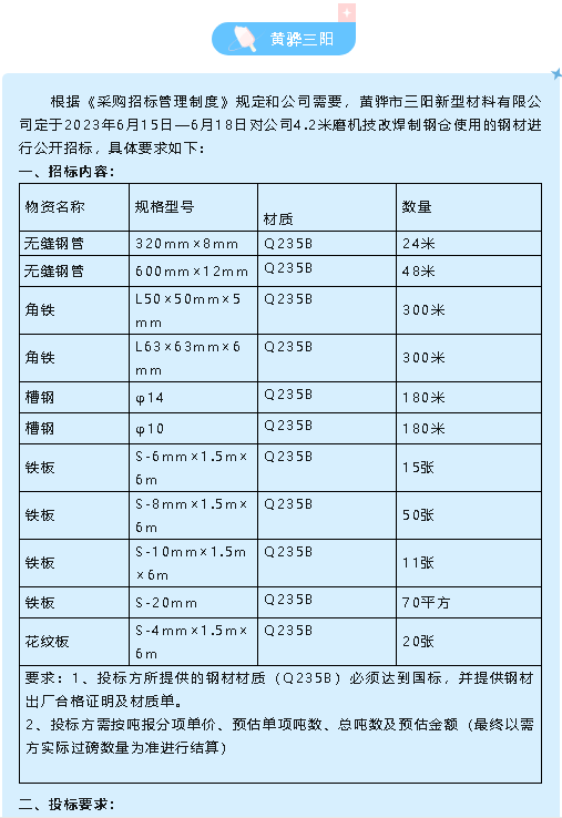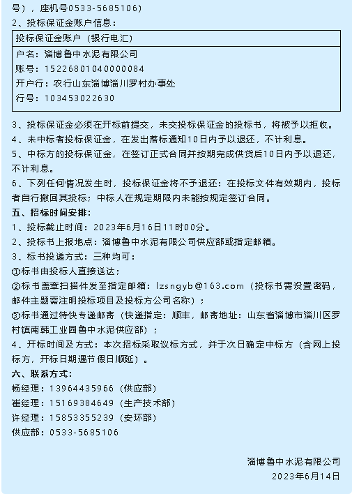 【招標(biāo)公告】魯中水泥、黃驊三陽