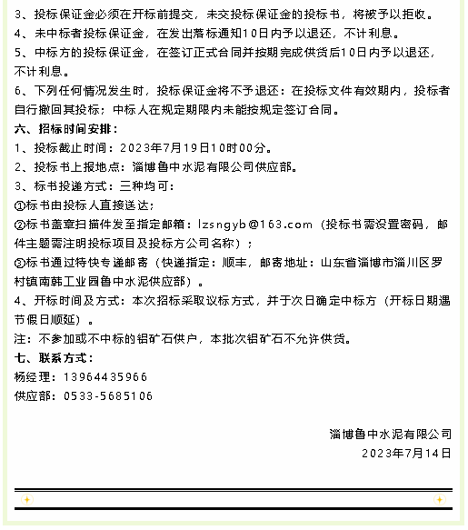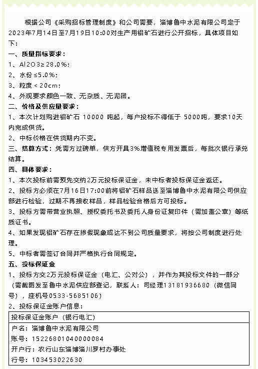 【招標(biāo)公告】魯中水泥