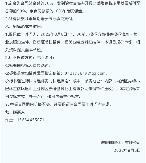 【招標(biāo)公告】鵬峰化工