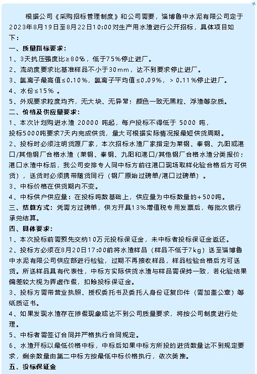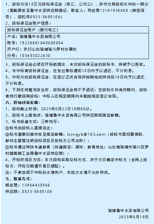 【招標公告】魯中水泥