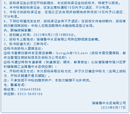 【招標(biāo)公告】魯中水泥