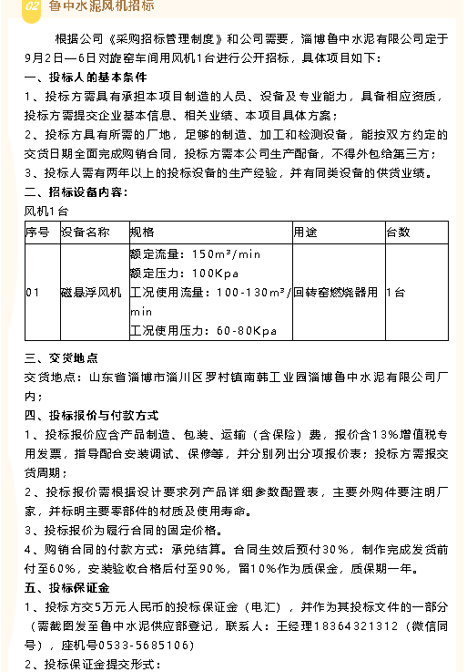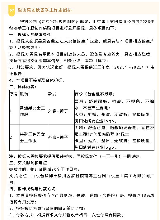 【招標公告】重山集團秋冬季工作服、魯中水泥風機招標