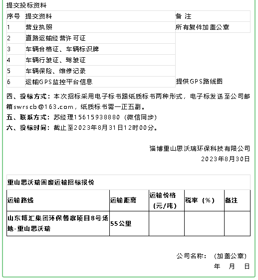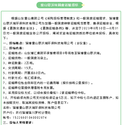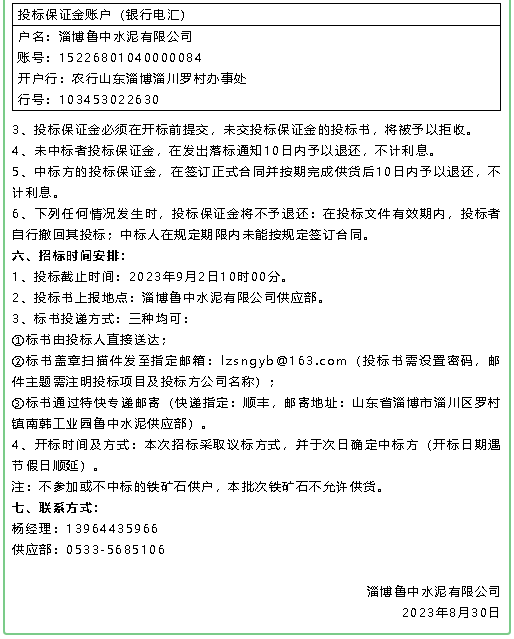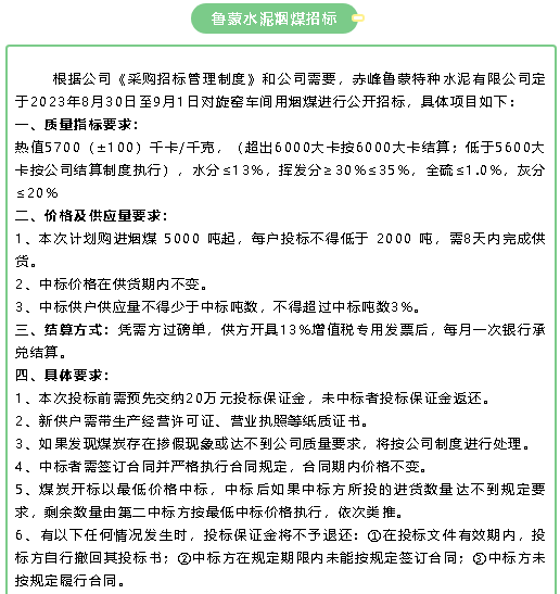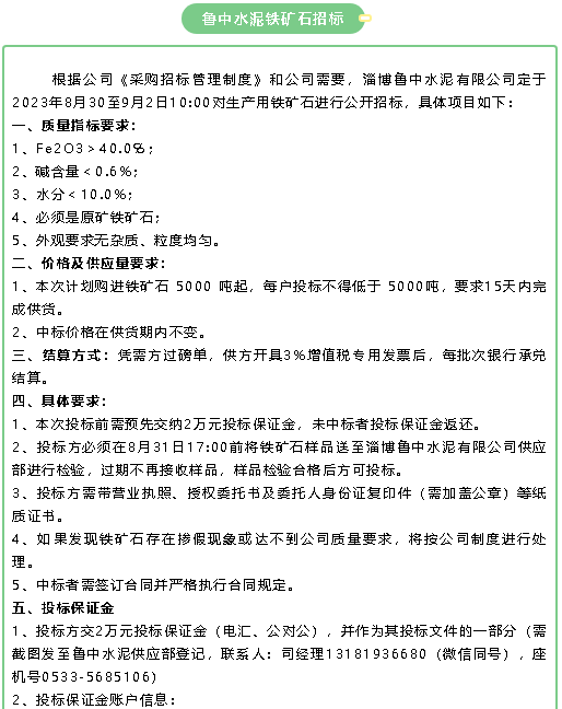 【招標(biāo)公告】魯中水泥鐵礦石、魯蒙水泥煙煤、重山思沃瑞固廢運(yùn)輸招標(biāo)?