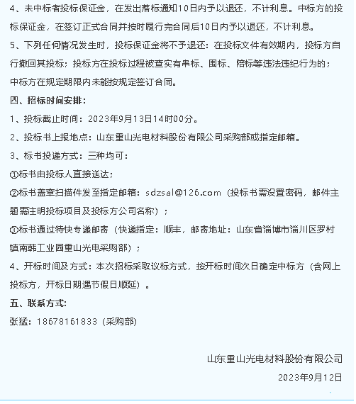 【招標(biāo)公告】魯中水泥、重山光電
