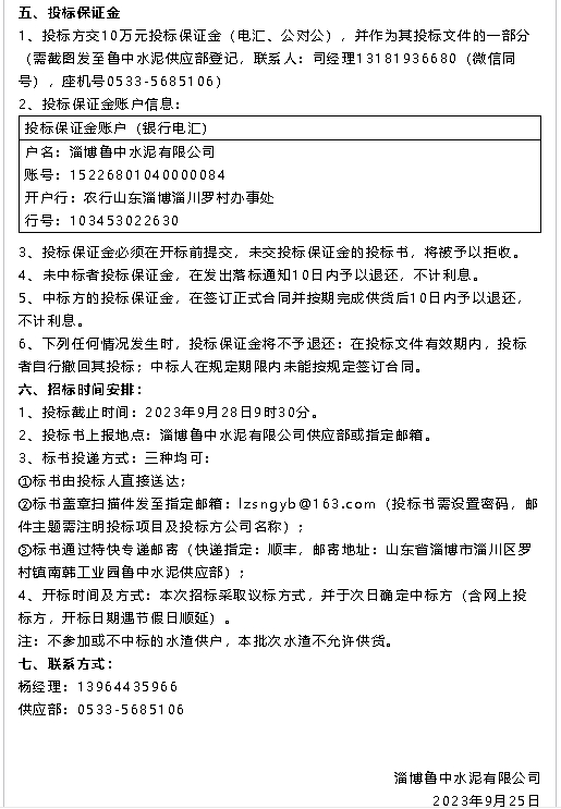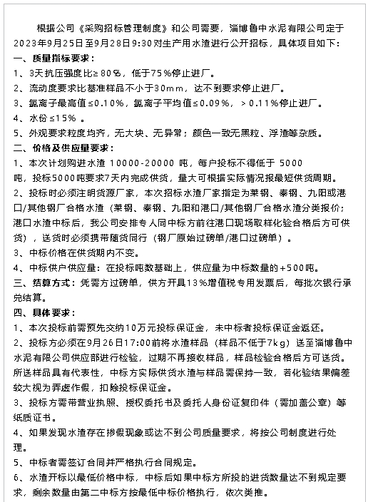 【招標(biāo)公告】魯中水泥