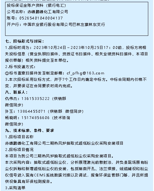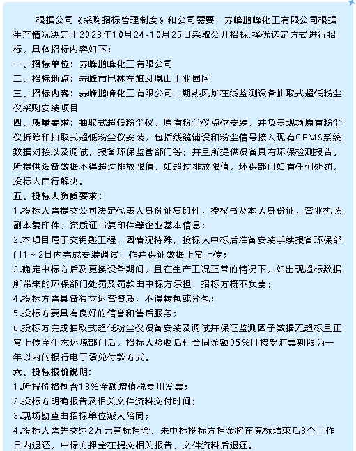 【招標(biāo)公告】鵬峰化工