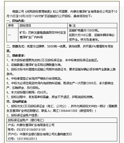 【招標(biāo)公告】螢澤礦業(yè)