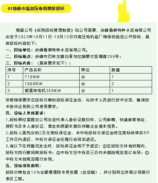 【招標(biāo)公告】魯蒙水泥