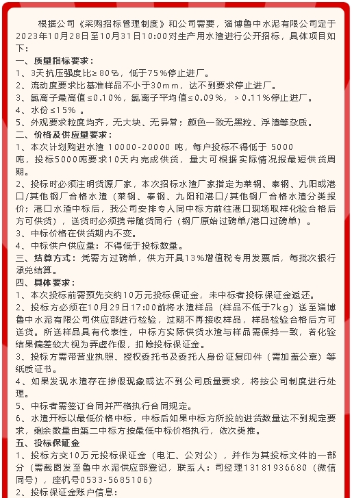 【招標(biāo)公告】魯中水泥