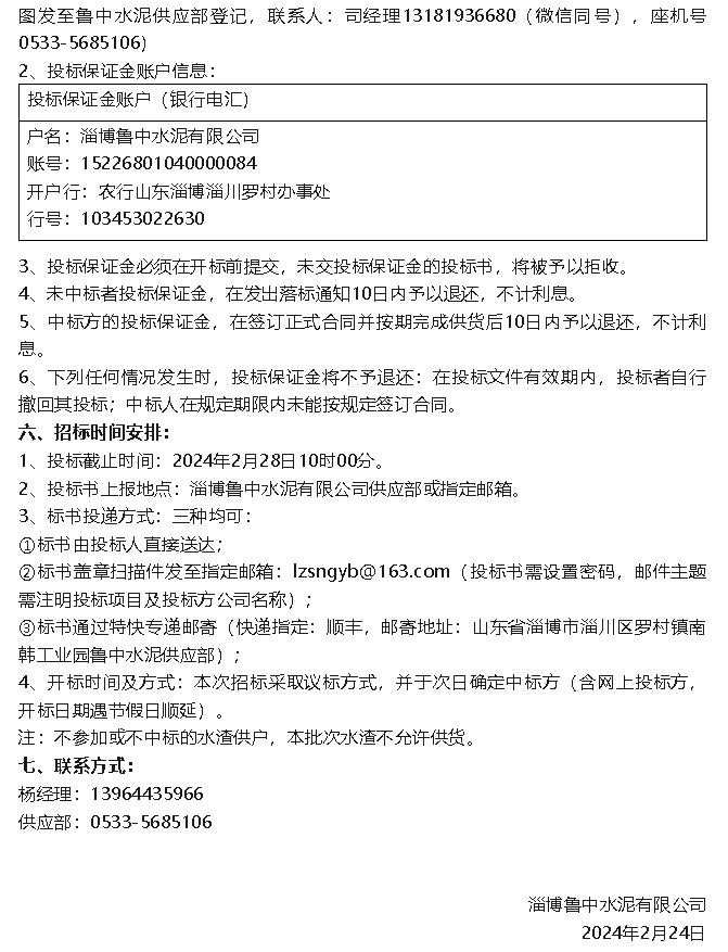 【招標(biāo)公告】魯中水泥煙煤、水渣招標(biāo)