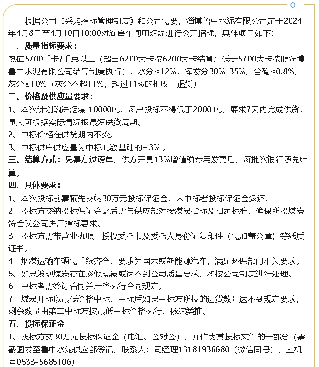 【招標(biāo)公告】魯中水泥
