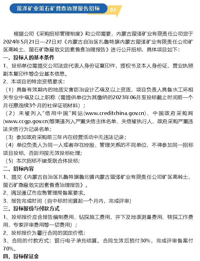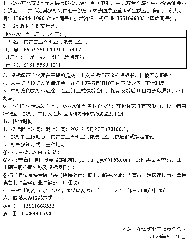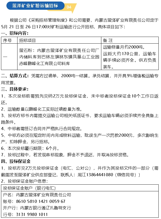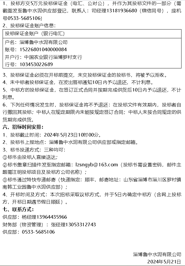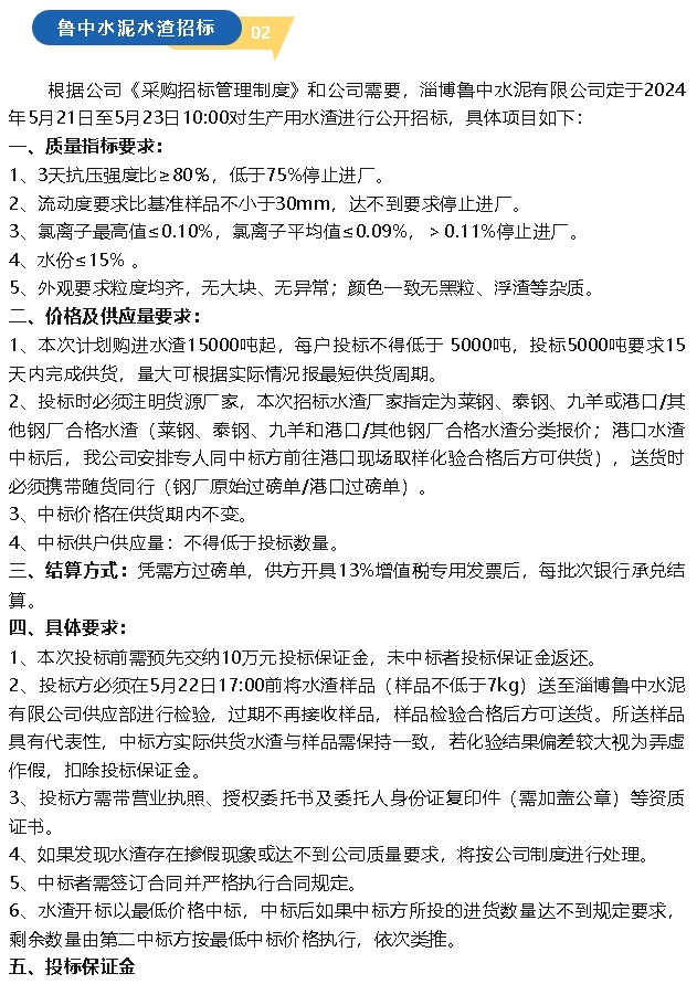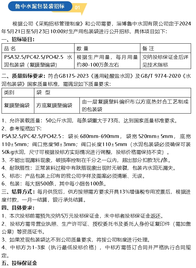 【招標(biāo)公告】魯中水泥包裝袋、水渣,螢澤礦業(yè)普查治理報(bào)告、礦粉運(yùn)輸招標(biāo)
