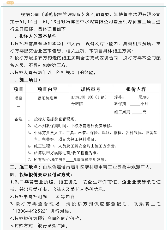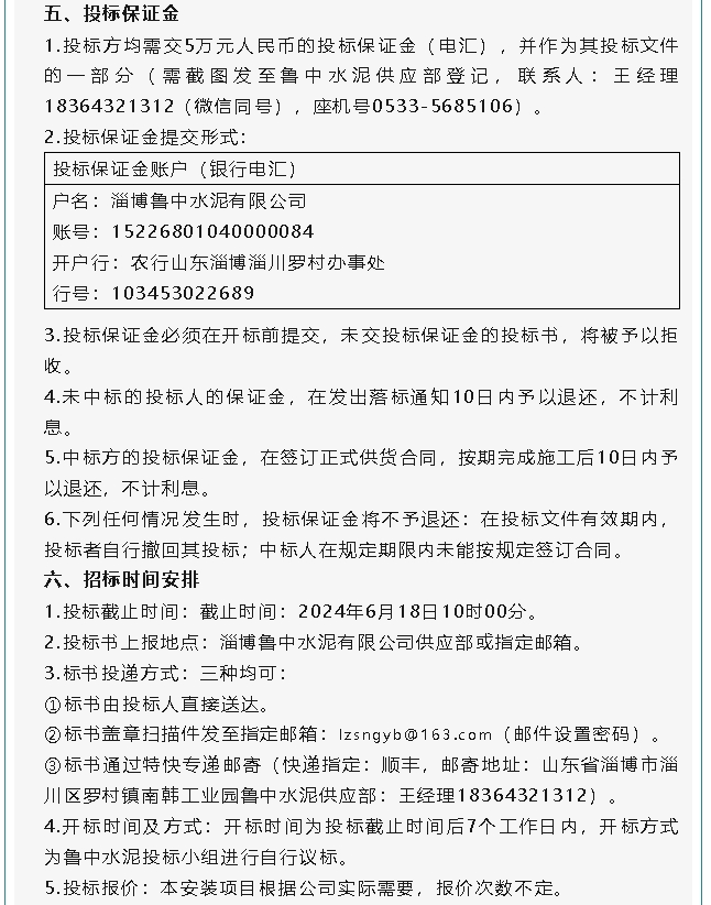 【招標(biāo)公告】魯中水泥