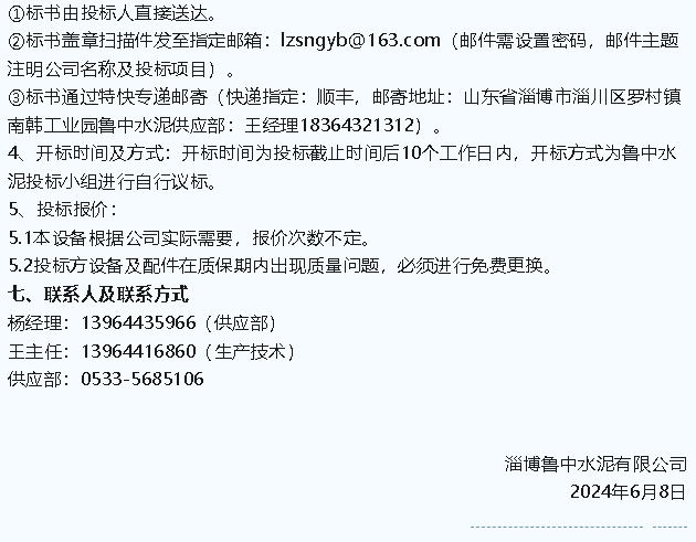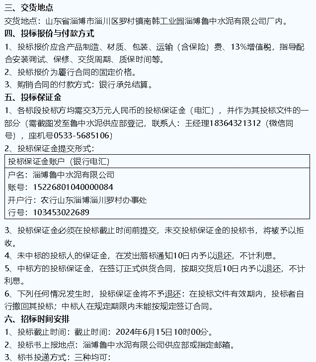 【招標(biāo)公告】魯中水泥