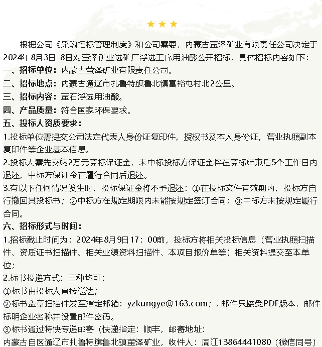 【招標(biāo)公告】螢澤礦業(yè)