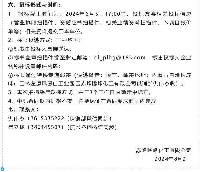 【招標(biāo)公告】鵬峰化工