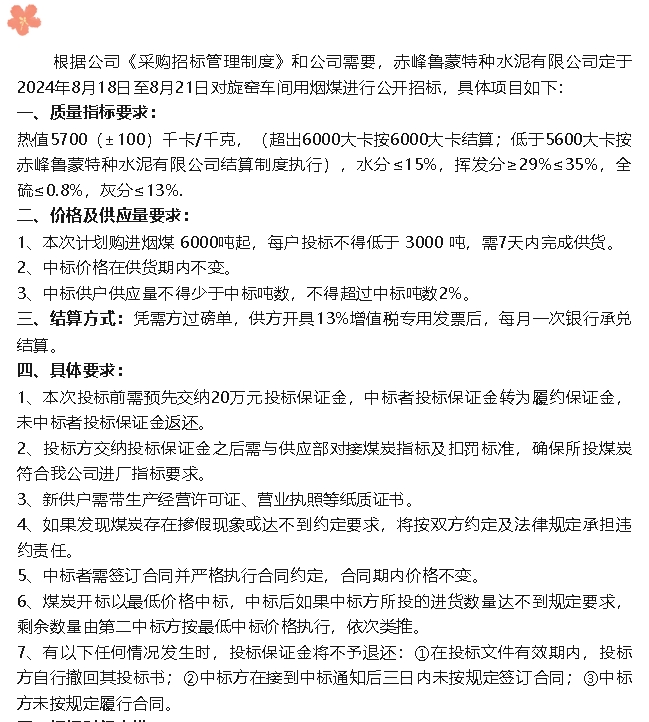 【招標(biāo)公告】魯蒙水泥