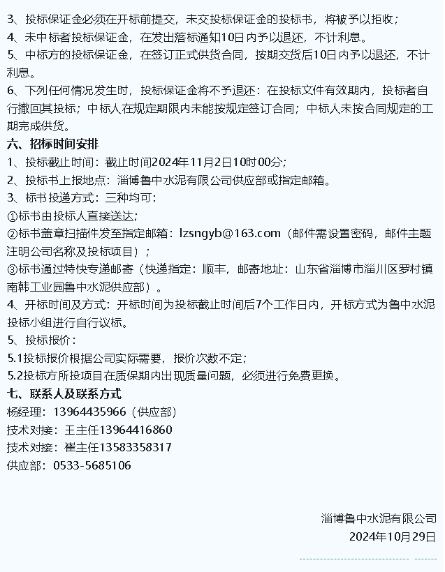 【招標(biāo)公告】魯中水泥