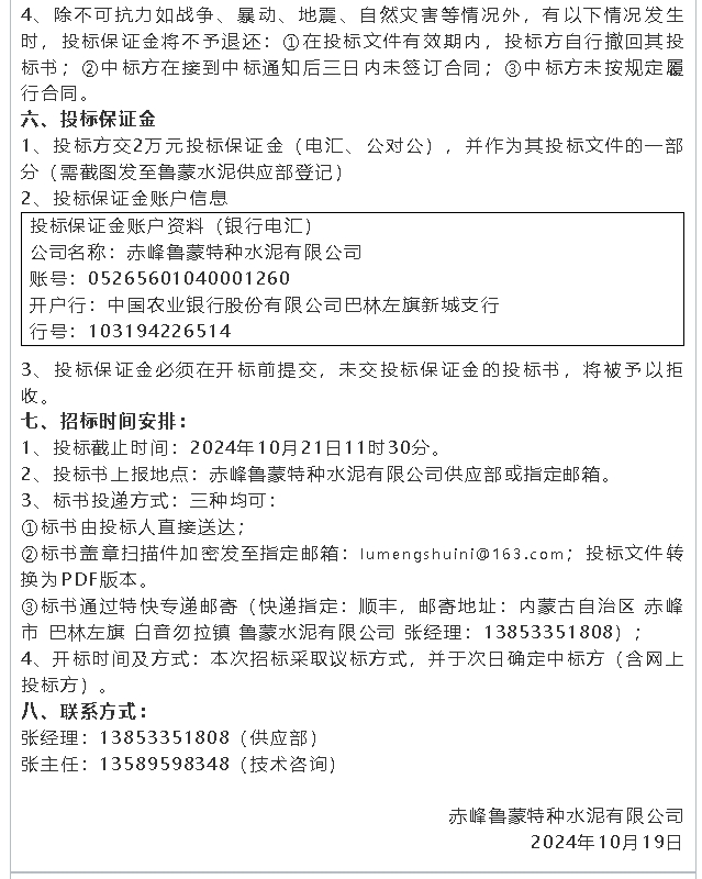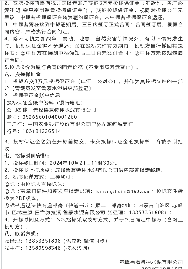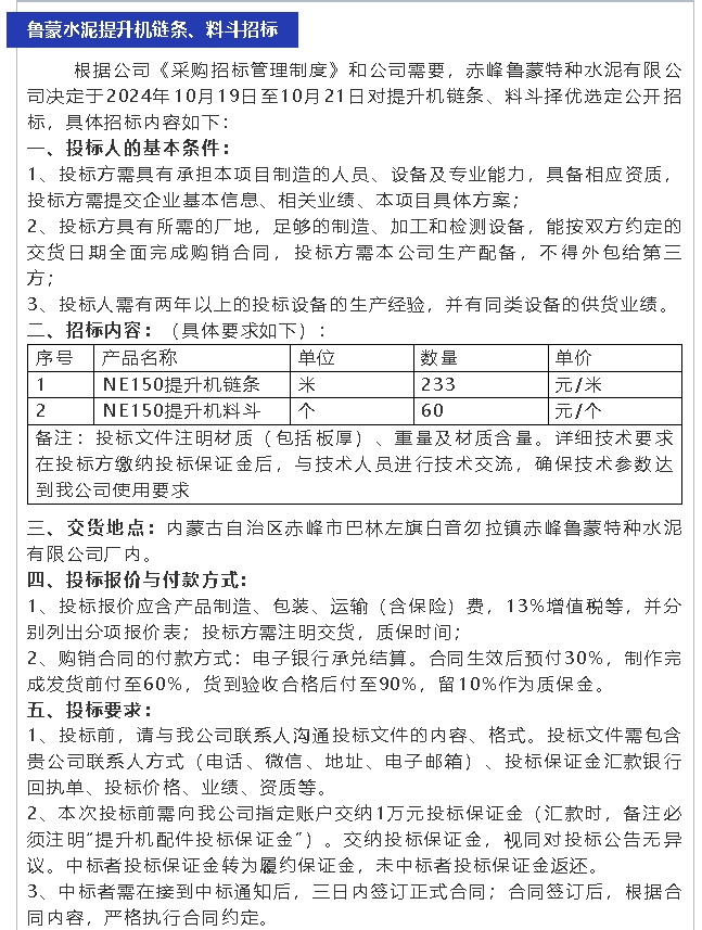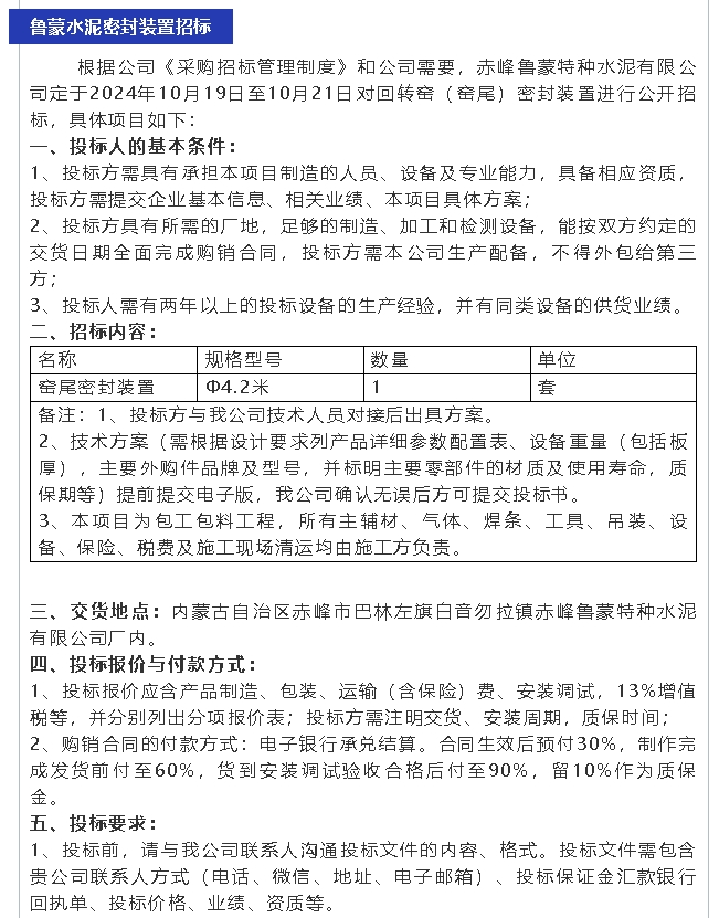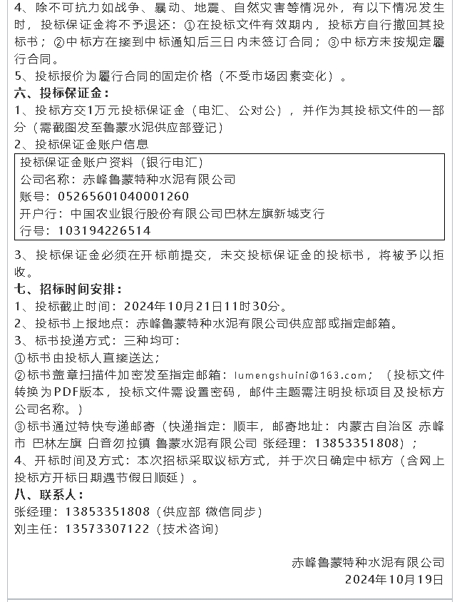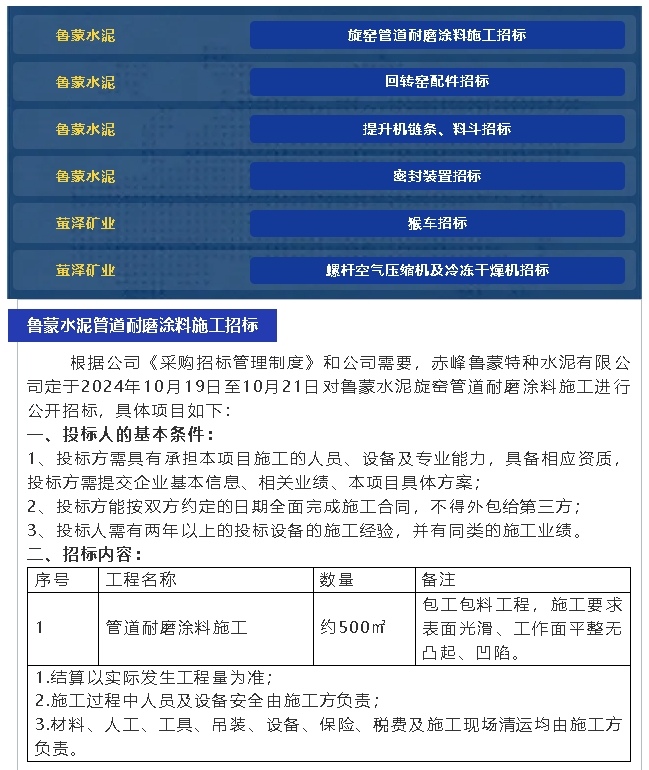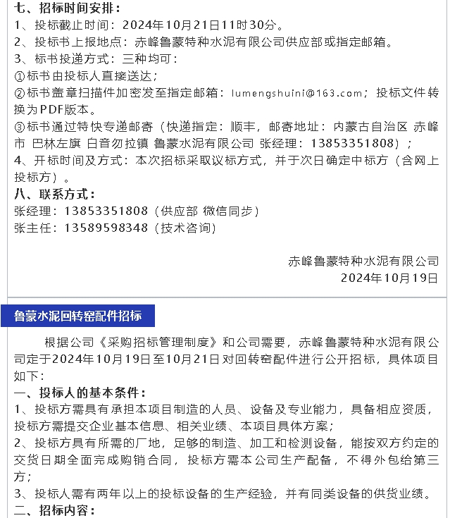 【招標(biāo)公告】魯蒙水泥、螢澤礦業(yè)