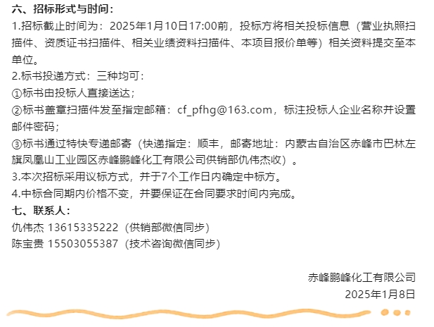 【招標公告】鵬峰化工