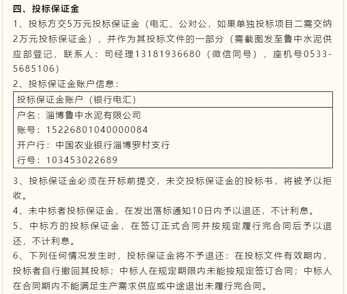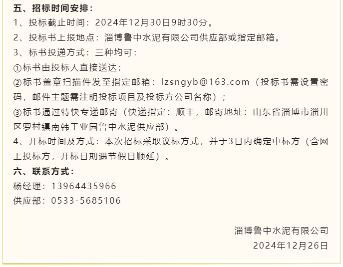 【招標公告】魯中水泥