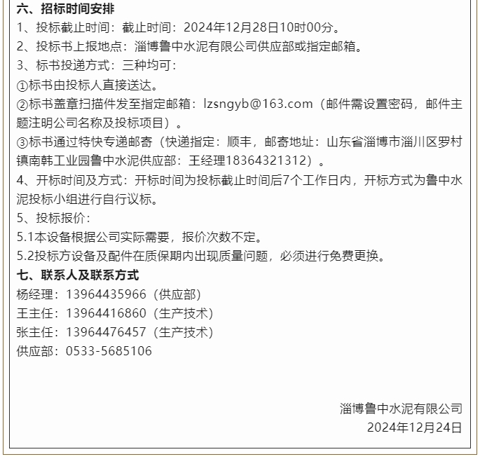 【招標(biāo)公告】魯中水泥