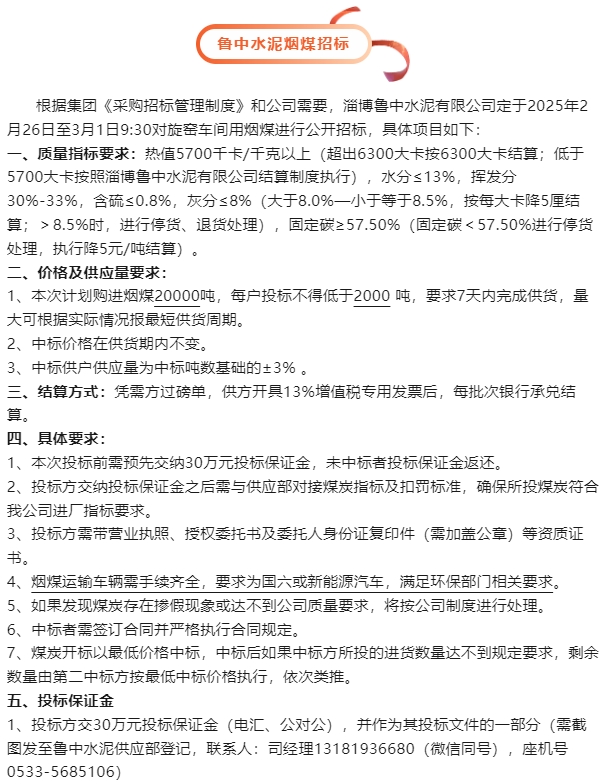 【招標(biāo)公告】魯中水泥、魯蒙水泥