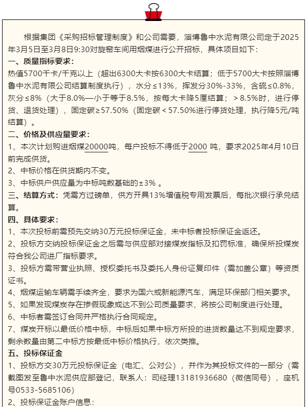 【招標(biāo)公告】魯中水泥