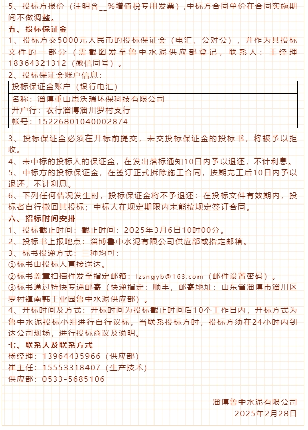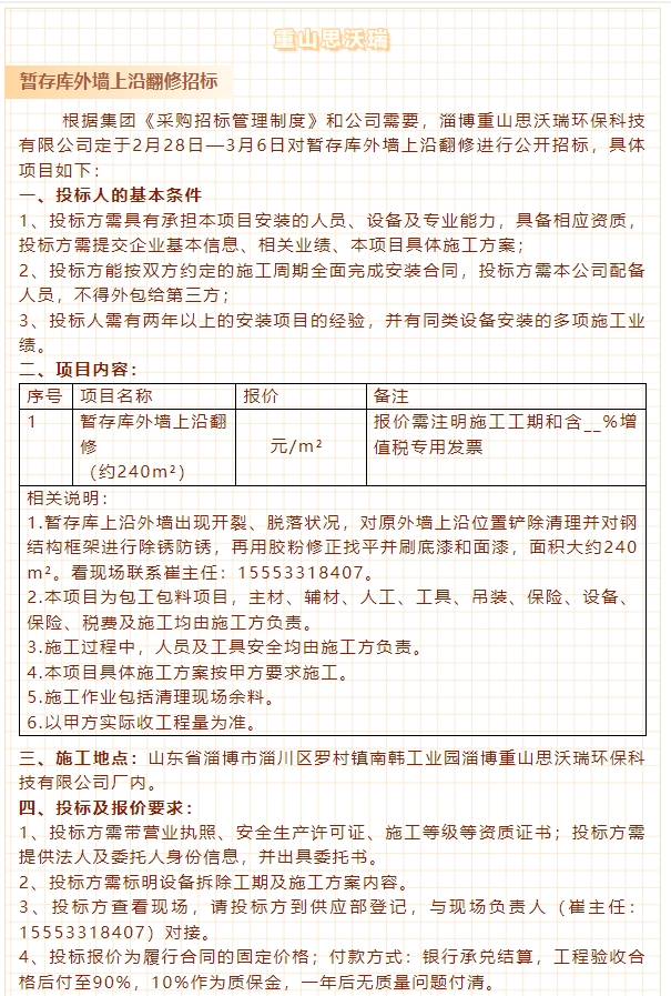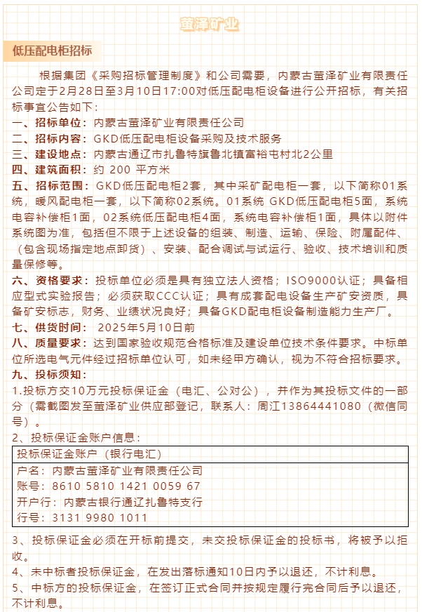 【招標公告】重山思沃瑞、螢澤礦業(yè)