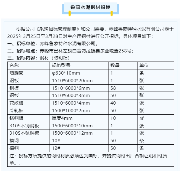 【招標公告】魯中水泥、魯蒙水泥