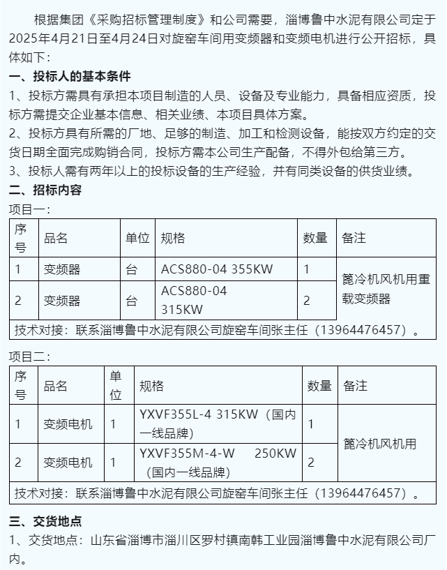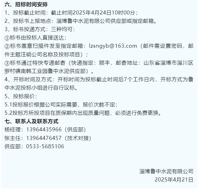 【招標(biāo)公告】魯中水泥