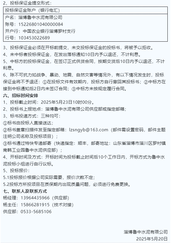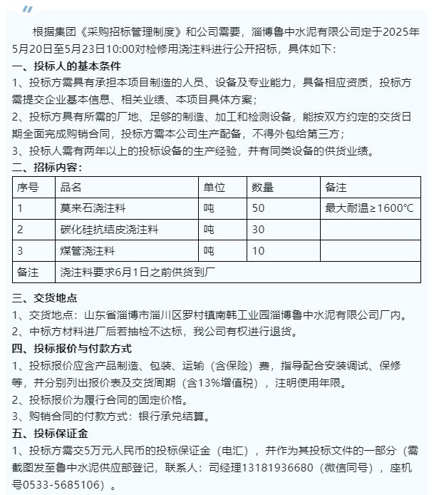 【招標(biāo)公告】魯中水泥