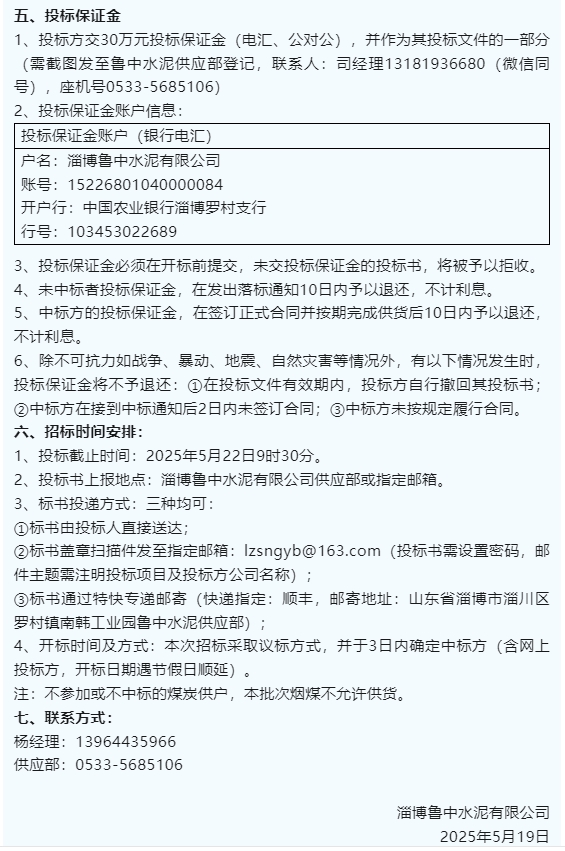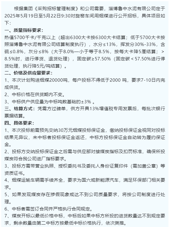 【招標(biāo)公告】魯中水泥